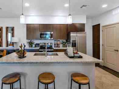 At first glance, The Landing at Fiesta Village Apartments looks like any other upscale community. But, in reality, these luxury apartments in Mesa, AZ, are one of the area's unsuspecting gems, boasting carefully curated amenities, spacious interiors, and a smart technology package that takes convenience to the next level. As you cross the gates of our community, you will discover an oasis befitting the hot Arizona landscape. The crisp lines of its contemporary design contrast the pool's sparkling waters, while the spa and cabanas make you feel like you just entered a resort. The outdoor entertainment area with lounge seating, grilling stations, and a fire pit is equally exciting. Inside, there are a state-of-the-art gym, a business center with co-working spaces, and a clubhouse full of surprises such as a billiards table. This is just the beginning. Find out more during a tour of our Mesa, AZ, luxury apartments!