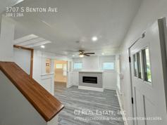 Charming completely updated 3 bedroom 1.5 bath bungalow style home. Spacious living/dining area with modern fireplace, sleek white cabinetry and granite countertops in the all new kitchen equipped with refrigerator and stove, updated bathrooms, laundry hookups and lovely covered front porch.