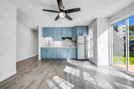 You will love this 2 BR, 1 Bath attached ohana with a yard to gaze out and enjoy your morning coffee and listening to the birds chirp. No stove in kitchen, but electric cooktop is new. Beautifully remodeled through out. Shared washer and dryer, located in garage. Fabulous location!