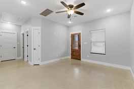 Step inside to find an open living area filled with natural light, featuring luxury wood-look vinyl flooring that runs through the main living spaces, creating a clean and modern feel. The plush carpeting in the bedrooms adds warmth and comfort, while ceiling fans and window blinds throughout the home ensure year-round comfort and privacy.