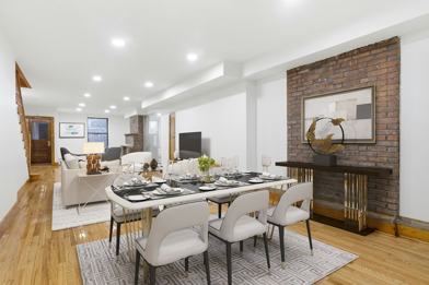 Welcome to your urban oasis at 231 West 113th Street, Unit 1! Nestled within a picturesque pre-war townhouse, this stunning 1,500 sq. ft. home offers a harmonious blend of classic charm and modern conveniences. As you enter, you'll be captivated by the high ceilings and exposed brick, creating an inviting and spacious atmosphere. This duplex boasts a thoughtful layout with 6 generously sized rooms, including 2 beds and 2.5 baths, ensuring ample space for various lifestyle needs. The garden-level unit is bathed in excellent natural light from its north and south exposures, while skylights enhance the airy ambiance. Hardwood floors and a decorative fireplace in living room and both bedrooms add warmth and character to this beautiful home. The state-of-the-art galley kitchen is a chef's delight, featuring new appliances, a dishwasher, and sleek cabinetry. The dining area integrates seamlessly into the living room, making it an exceptional space for entertaining guests. Retreat to the newly renovated bath with a luxurious stall shower for a spa-like experience. Step outside to your private garden, where you can enjoy a breath of fresh air and tranquil moments. Plus, the convenience of an in-unit washer and dryer adds an extra layer of comfort and practicality. Pets are welcome subject to certain restrictions, allowing you to bring your furry companion along in your new home. Although there is no doorman, concierge, or elevator attendant, the building ensures an engaging lifestyle with its boutique townhouse style and security features. Conveniently located in the heart of Harlem, you'll find yourself mere moments from vibrant cultural and culinary delights, including famed restaurant row on Frederick Douglass Blvd. Explore nearby parks like Morningside, Central Park, and Marcus Garvey Park to soak up the community's dynamic energy. With easy access to subway lines 2/3 and B/C, as well as multiple bus routes, commuting is a breeze. Don't miss this opportunity to embrace vibrant city living in a home that offers both historic charm and modern comforts. Schedule your tour today and discover the perfect blend of tranquility and excitement at 231 West 113th Street, Unit 1! #LiveandPlayUptown #BrownstoneLiving #CultureandCulinary #CommutersDream Rental Fees: Credti/Application - $30 1st Month - $5500 Security Deposit - $5500