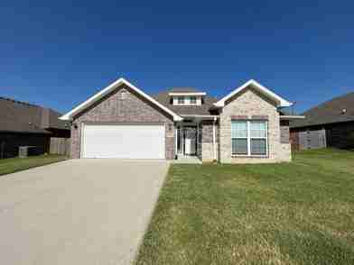 Newer built 3-bedroom, 2-bath home in Orchard Park, Bentonville, Ar, offering a bright open floorplan and modern finishes throughout. The large windows fill the living area with natural light, while the kitchen features granite countertops and ample storage in large closets. The master suite includes a large master bathroom and walk-in closets. Additional storage is available in generously sized closets. Outside, enjoy a covered patio, a fenced-in backyard, and a 2-car garage for convenient parking and storage.