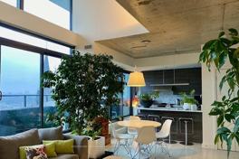 Bright, spacious & modern 1,121 sq ft rare 2-storey loft in the heart of King West. The expansive 288 sq ft covered terrace is an entertainer's or staycationer's delight, with gas (BBQ) & water lines, composite decking, and two huge double sliding doors to bring the outdoors in. Enjoy beautiful sunsets and gorgeous unobstructed sweeping views from floor-to-ceiling windows from every room. Upgraded throughout: high-end full-sized appliances, Italian Scavolini cabinets w/Caesarstone countertops, renovated Muti bathrooms, hotel-grade blackout drapes in primary bedroom, electronic washlet/bidet in ensuite w/remote, Nest thermostats, & rare gas cooking for the home chef! Outstanding central location: steps to the streetcar, The Well, Waterworks Food Hall, Stackt Market, Farm Boy/Loblaws, restaurants & cafes, nightlife, and a 15-minute walk to the Island Airport. Refurbishment of condo common areas (lobby, hallways, amenities) is anticipated soon! Well maintained & managed condo building. This loft is calling you home!