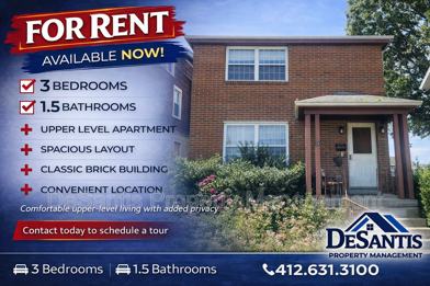 Welcome to your new home in charming West View, PA! This spacious 3-bedroom, 1.5-bathroom top-floor apartment offers a perfect blend of comfort and convenience.
