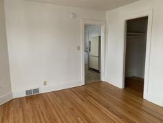 Take the enclosed steps up to the entry hallwy. Once into the unit you will enter into the eat in kitchen with updated stove and fridge. Off the hall you will find the full bath with tub shower. The main living area has a built in Murphy Bed behind the double doors. There is also a large walk in closet of the living area.. Tenant pay water and electric. Heat is included in rent.
