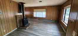 Welcome to this chalet style home, a charming 2-bedroom, 2-bathroom residence nestled in the heart of town. This single-level home features a cozy fireplace, perfect for those chilly evenings, and a fully equipped kitchen with a refrigerator, electric oven range, and garbage disposal for your convenience. Step outside to enjoy the front and back deck/porch, ideal for outdoor relaxation or entertaining. Need extra storage? The property also comes with two storage sheds. It is heated with baseboard heaters or the wood stove for the full chalet experience! Evaporative cooler for the summer time!
