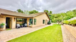Beautifully upgraded & remodeled home in the desirable Pala Mesa Fairway Villas HOA Community of Fallbrook. Minutes to 76-Fwy and I-15 corridor, as well as Bonsall or Fallbrook. Two Community Pools, Lovely Green Belt & Walking paths along the Pala Mesa Golf Course, and this home has its very own private gate and back entrance to one of the community paths that leads you just a short distance to one of the more secluded and private of the two community pools! Enjoy days and evenings in the tranquil setting of the large back yard which is hardscaped with pavers and stone and has a large natural gas fire pit and integrated landscape lighting.