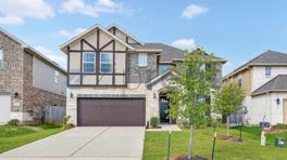 Welcome to this stunning two-story home located at 17685 Martin Creek Lane in the charming town of Montgomery, TX. This residence boasts a striking exterior with a blend of stone and brick, creating an inviting curb appeal. As you step inside, you'll be greeted by a spacious open floor plan that features high ceilings and an abundance of natural light. The main level offers a beautifully designed kitchen equipped with modern stainless steel appliances, a large island with seating, and elegant cabinetry, perfect for culinary enthusiasts and entertaining guests. Adjacent to the kitchen is a cozy living area with expansive windows that overlook the lush backyard.