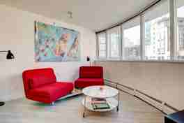 Rent $3,100 a month, includes heat, hot water, access to the large indoor swimming pool, sauna, hot tub, gym, media room, and the private, elevated courtyard.