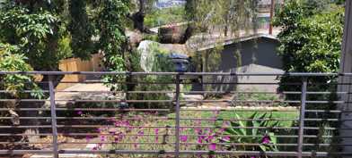 Great backyard with lawn, avocado trees and a deck, perfect for outdoor dining.