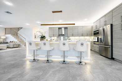 Designer home, styled like a model residence. Located in Dakota, 15377 Green River Court sits on a prime oversized west-facing lakefront lot with stunning sunset views and added privacy. This Siena Grande model by GL Homes offers 6 bedrooms and 5 full bathrooms with high-end upgrades throughout. Features include Italian tile on all levels, a custom stone staircase, a designer wine wall, and abundant natural light. All bathrooms include custom Italian-style walk-in showers with glass doors. The primary suite offers dual closets and vanities with a spacious shower. Enjoy a private backyard with pool, covered patio, and lake views. Impact windows and 2-car garage.