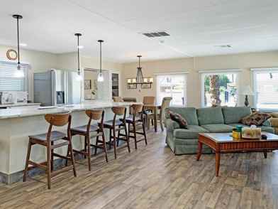 Discover the epitome of comfort and style in this meticulously renovated 2-bed, 2-bath manufactured home nestled within a vibrant 55+ community. Offered for an annual lease OR monthly (seasonal rate applies) FURNISHED and boasting a spacious interior, the focal point is the expansive kitchen featuring a large island, perfect for entertaining or casual dining. With updated countertops, modern appliances, and ample cabinet space, it's a chef's dream. The adjoining living area is bathed in natural light, offering a cozy retreat for relaxation. Both bedrooms are generously proportioned, providing privacy and comfort, while the bathrooms showcase contemporary fixtures and finishes. Outside, a sprawling lot offers endless possibilities for gardening, outdoor activities, or simply unwinding in the serene surroundings. Covered parking ensures convenience and protection from the elements. Residents of this community enjoy access to a range of amenities including pools/spas, golf, tennis/pickleball, and social clubs. Conveniently located near shopping, dining, and recreational options, this home offers both tranquility and convenience. Embrace the charm of 55+ living – schedule your tour today! *Ideal applicants will meet or exceed the following Qualification Standards: verifiable gross household monthly income of 3X the monthly rent, minimum 650 credit score, no previous evictions. Anyone over the age of 18 who intends to occupy the home full time will be required to submit a rental application. Applicants must be approved by HOA.