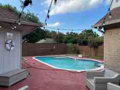 Beautiful 4 bedroom 2 bath home (1 King, 1 Queen, 1 Full and 2 Twins) with Large Swimming Pool and great outdoor patio, 8 foot fence to allow maximum privacy. EV charger in garage. Quiet, walkable neighborhood with easy access all major highways. Master bedroom has attached reading room with lots of closet space and fireplace. Home has central air and heat to ensure maximum comfort. 2 car garage and 2 additional driveway parking spots located behind a security gate. Fully furnished and stocked kitchen with all the necessary items to cook at home. Large lot with fenced backyard for your furry friends (all pets allowed with small deposit). Lots of trees and great landscaping to make you feel at home. Formal dining room that has sitting for 8 people. Large kitchen has breakfast table for 4.