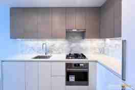 • Modern kitchen with premium gas stove and appliances that's beautifully integrated into cabinetry