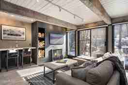 Exquisitely renovated and perfectly positioned 1 bed 1 bath. ON. THE. RIVER. Expansive living room with two large custom day beds ideal for relaxing after a long day on the slopes or as sleeping quarters for extra guests. Open the sliding glass doors to the sights and sounds of the river with views along the watershed and towards Independence Pass. Clean, contemporary fixtures and appliances with rich accents including reclaimed wood and textured black plaster. Cook's kitchen, wood burning fireplace. Washer/dryer combo in unit. Chateau Roaring Fork amenities include heated lap pool, two hot tubs, private storage, gym with a Peloton bike, sauna, and individual ski lockers, and is just a stone's throw from all that downtown Aspen has to offer.