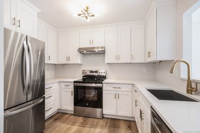 Stunning, full remodel 2 bed 1 bath top floor condo. Everything new and super high-end. Stunning custom kitchen, beautiful wood cabinets, quartz countertops and backsplash, stainless steel new appliances with ice maker in freezer. New luxury vinyl floors, designer wood burning fireplace. Spa bath, glass stall custom tile shower and floors, new vanity. Primary bedroom with huge walk-in closet. Washer/dryer in unit and wall unit a/c's. New sliding glass door to big balcony.....new new new, nothing compares on the market. 1 assigned parking spot in front of unit and 2nd floating permit spot plus visitor spots throughout complex. Pool, basketball court for tenants use, walk to candlewood lake park with beach, 4th of July fireworks. Easy access to shopping, Starbucks, and all major commute routes. Excellent credit and income verification required. Agent/Owner