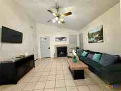 Charming Home, fully furnished home. Two bedrooms, one bath. Covered patio and fenced yard. Main room has a queen size bed, second room has 2 twin beds.