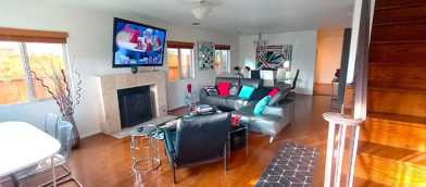 Modern bright spacious FURNISHED TOWNHOUSE with attractive happy decor & large well-equipped COOK'S kitchen!Conveniently located on quiet tree-lined street blocks S of the Beverly Hills Sign as part of a duplex of side-by-side units. In another separate structure there are another two Single units for a total of four on property. Near ALL:Rodeo Drive, Beverly Center, Beverly Connection, The Grove as well as the top-rated hospitals: Cedars Sinai, Kaiser WLA, UCLA. BH Tennis Courts & Park are 3 blocks away! The space It has a large living & dining room area with a gas fireplace with glass doors. Euro-style kitchen w/lots of cabinets, a granite sink & countertops w/a gas stove and dishwasher. Floors are red oak hwd in the main areas and the two lower bedrooms. The front entry, kitchen and all three bathrooms imported tiled floors. The upper two Suites (Principal & JR.) have off-white plush carpeting & lots closet space with custom shelving. They also have French doors that connect to the large (11' x 6') deck overlooking the tropical front yard with wide pavered entryway. All three bathroom have a window for natural light and circulation. There are televisions in the living and the two upper master suites. There is modern lighting and fan/lighting fixtures throughout as well as faux wood horizontal blinds in all the windows. The stairwell and 2nd floor have high ceilings with two skylights. The upstairs laundry/cleaning closet includes a Noritz tankless water heater and a full-size washer & gas dryer. There is central heat and air with a NEST thermostat. Unit is non-smoking indoors. Please note that the monthly price includes a cap of total of ALL utility usage of $350 per month. Over usage from that limit will be charged as extra to the Tenant. There is a detached single-car garage with metal door and remote control available. The price as listed is for a 3-month minimum stay. Might consider shorter lease period for higher monthly. AVAILABLE: Between October 1st 2025 - January 4, 2026. Three-month minimum stay. This price includes utilities up to a maximum of $350 per month with anything over to be paid by Tenants. Will consider less time for a higher monthly price. Security Deposit is a minimum of $6,500. Credit score of 700+ required of ALL potential occupants 18 years of age and over. Application processing fee per applicant is $35. IMPORTANT NOTE: Please complete the Renter's Profile before requesting a viewing appointment. Near ALL: BH Tennis/Pickle Courts & La Cienega Park (running path, exer equip & toys) .6 Rodeo Drive 2 B Center & B Connection 1.6 The Grove 1.7 Santa Monica/Venice 8 HW Walk of Fame, Bowl & Ford Theater 6 Griffith Park Observatory 7 Cedars Sinai 2 Kaiser WLA 1 UCLA 5.8