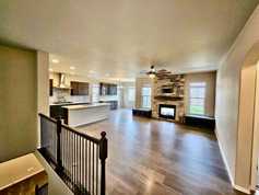 Built in 2021 with upgrades from top to bottom! LVP flooring and modern lighting through open concept main level common areas. Living room includes indoor/outdoor double sided fireplace with stone surround. Dining area with additional cabinetry walks out to covered patio and fenced backyard with salt water hot tub and dog run! Property backs to greenbelt with walking path! Gourmet kitchen features large island, quartz countertops, complimentary backsplash, convection oven, gas range/vent hood and pantry! Master suite on main level includes walk out to back patio, attached 5 piece bath with dual vanities, large shower and walk in closet! Additional bedroom on main level makes for great flex/office space! Finished basement provides large family room with wet bar and wine fridge, breakfast nook, and two additional bedrooms! Additional property amenities include central air, 3 car garage, central vac system, toe kick vacuum under kitchen sink, Sonos surround system in basement and more! Located close to schools, parks, hiking/biking trails and more! Metro dues included in tenant paid water bill, provides access to amenities in the neighborhood.