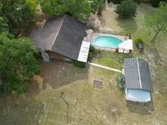 LOG CABIN Retreat with POOL on 2 acres with Workshop/Storage Building, and Equestrian Potential in Zephyrhills/Wesley Chapel. Your oasis nestled on 2 acres of Zephyrhills countryside. This charming log cabin retreat offers the perfect blend of rustic charm and modern comfort. Step into the spacious great room adorned with soaring ceilings and a cozy wood-burning fireplace, creating the ideal ambiance for gatherings with loved ones. With two bedrooms and two baths and a cozy workshop, this cozy cabin provides ample space for relaxation and rejuvenation. Hardwood floors flow seamlessly throughout the great room, dining area, and kitchen, complementing the natural beauty of the surroundings. The kitchen boasts all wood cabinets, built in oven and cooktop adding to the timeless appeal of the home. Step outside to discover your own private paradise, complete with a refreshing pool nestled within a security fence. Enjoy lazy afternoons lounging on the expansive front porch or hosting barbecues on the Lanai in the pool area. The property is fully fenced with woven wire, ensuring both privacy and security. For those with a penchant for hobbies, the property features a 21 x 24 metal building with concrete floors, perfect for a cozy workshop or creative studio. Additionally, there’s ample space to park a lawnmower or golf cart, making maintenance a breeze. Located in an agricultural zone, this tranquil retreat offers endless possibilities. Bring your horses and embrace the equestrian lifestyle amidst the lush landscape dotted with fruit trees. Enjoy the freedom to cultivate your own mini-farm or simply bask in the serenity of country living. Situated on a county-maintained dirt road at the west end of Chance Road, this property offers a serene escape from the hustle and bustle of city life while still being conveniently located. Don’t miss your chance to make this one-of-a-kind property your own slice of paradise. Schedule your private tour today and discover the endless possibilities awaiting you at this captivating log cabin retreat. Room Feature: Linen Closet In Bath (Primary Bedroom).