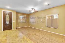 This beautiful 4-bedroom, 2.5-bath home features low-maintenance desert landscaping, a two-story design, and a two-car garage. Inside, the spacious kitchen features a center island and is conveniently located adjacent to the family room, providing access to the back patio. The home offers ample space, including a large loft or game room, perfect for entertaining or relaxing. Both carpet and tile flooring are throughout. The location is convenient, near the top entertainment venues in the Phoenix-Goodyear area, with the Goodyear Ballpark nearby. With easy access to I-10, don't miss the opportunity to rent this stunning home with plenty of space! Pets are not accepted.
