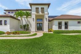 Step into the epitome of luxury living with this exceptional 2-story, 5-bedroom, 3.5-bath resort-style pool home nestled in the prestigious Cape Royal community of Southwest Florida. Honored with an Aurora Award for architectural excellence in the Southeastern United States, this distinguished property has graced the pages of Grandeur magazine, News Press, and Architectural Digest. Enjoy stunning western exposure providing unobstructed views of Southwest Florida's mesmerizing sunsets. Embrace a world-class lifestyle with access to the acclaimed 27-hole Cape Royal golf course, perfect for golf enthusiasts and families seeking the ultimate Florida experience. Relax in the expansive saltwater pool and spa, complemented by poolside games, an outdoor kitchen with a bar, and big-screen TVs for seamless entertainment. Gather around the fire pit for cozy evenings under the stars. Inside, discover Cambria quartz countertops and European dark wood cabinets throughout, creating an ambiance of timeless elegance and functionality. The upstairs master suite boasts a spacious bathroom with an inviting walk-in shower. Step onto the balcony from the master suite and soak in panoramic views of the pool, golf course, and serene lake. This exclusive property offers an unparalleled opportunity to indulge in luxury living, whether you're hosting gatherings with friends or seeking a tranquil family retreat. Experience the ultimate in comfort and sophistication in one of Cape Royal's most coveted homes. Don't wait, schedule your showing today for a chance to experience this amazing property!