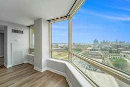 Beautiful and fully updated condo situated on the Detroit Riverwalk in the Harbortown community. This 16th floor condo shows great views of the Detroit River, Canada, as well as the city of Detroit. Lots of windows and natural light from all angles highlight this condo with attached walkout balcony. High end scratch-resistant flooring throughout, agreeable color schemes, updated lighting, and fully updated kitchen provide for a comfortable living space. Kitchen shows nice cabinetry, quartz countertops, stainless steel appliances and much more. Both bedrooms of good size with the primary bedroom having an attached on-suite bathroom. Both baths are clean with agreeable tones that match the rest of the home's updates. Gas and water are included. The amenity center has a fitness facility, pool, roof hangout and much more for owners and their guests to enjoy. This is all complimented by neighboring large fields, tennis courts, and much more. Designated parking given and 24-hour gated security. Buyer's agent or buyer(s) to verify all information.