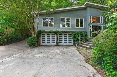 Welcome to your dream home: a mid-century modern architectural gem with a unique, worldly eclectic interior filled with antiques, creating a cozy and inviting atmosphere. This fully furnished home can either be rented for $3900 no utilities included, only weekly gardening, monthly cleaning services, and internet included or $4400 all utilities, internet, weekly gardening, and monthly cleaning services all covered by your monthly rent. The enchanting front yard features lush gardens, a hidden fire pit, and a serene pond. Parking is convenient with space for three cars on the pad and a two-car attached garage. Upstairs, the open-concept living, dining, and kitchen area boasts floor-to-ceiling windows, flooding the space with natural light. The master suite on the main level includes a skylight, sliding glass doors leading to a private deck, an ensuite bath with a double vanity, and a shower. The office is perfectly suited for a work-from-home setup. Downstairs, you'll find two additional ensuite bedrooms, one of which is ideal for a gym or yoga studio. The laundry room with a washer and dryer is also located on this level. The fully fenced backyard is a tranquil oasis with a patio area for al fresco dining, plush greenery, and multiple ponds, offering peace and serenity in the heart of the city. Conveniently located near Emory University and Children's Hospital of Atlanta, this home is perfect for a professor or executive relocating to Atlanta while deciding where to settle permanently.
