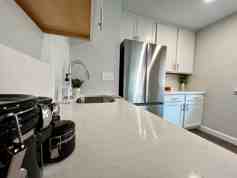 Picture yourself creating culinary masterpieces in our stunning kitchen, complete with brand new stainless steel appliances that include a dishwasher, microwave, refrigerator, and stove. The elegant white shaker cabinetry and quartz countertops will take your breath away!