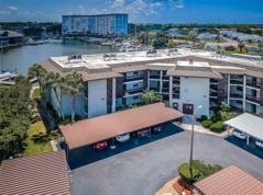 WATERFRONT GEM! ANNUAL RENTAL! Stunning Waterfront Condo! TOP FLOOR, END UNIT, overlooks the Floramar Channel & Seafire Grill (formerly Widow Fletchers). Pay $1800 plus electric! RENT INCLUDES EVERYTHING ELSE: INTERNET, CABLE TV, WATER/SEWER, GARBAGE, AND HEATED COMMUNITY POOL. Spacious 2 bedroom, 2 bath condo has been remodeled & updated and includes a covered carport. The building has 2 elevators. Very inviting and open floor plan has great natural light, high ceilings were refinished with a knockdown ceiling texture, new interior paint, Wood plank look ceramic tile installed over cork throughout, raised panel interior doors/bifolds and door hardware. Separate dining area is adjacent to the Large living room has access to the Florida room (not included in living area square footage) overlooks the Floramar Channel. Recently updated, the beautiful kitchen has granite countertops, SS appliances, undermount SS sink, updated faucets, soft close cabinetry, an abundance of counterspace, closet pantry, a breakfast bar and LED recessed lighting. A laundry closet is conveniently located in the kitchen with a Washer/Dryer combo. A split bedroom plan, the master bedroom with water views is located in the rear of the condo and includes a large walk-in closet and a beautiful ensuite updated bathroom, new vanity with dual sinks, updated faucets, & granite countertop, with a walk-in shower and glass enclosure. The 2nd bedroom is located near the front of the condo and is adjacent to the main bathroom. There is a heated community pool and a tiki hut that overlooks the Floramar Channel. No Age Restriction. No Pets, Only ESA approved animals. An Optional membership is available for the Gulf Harbors Private Beach Club for $200 a year. Beautiful 1/4 mile of sandy beach is pristinely maintained with 21 picnic pavilions, charcoal grills, prep tables, showers, adironack chairs, and restrooms. Superior Location has a High walking score with a Shopping center across the street with Publix, Big Lots, Old Time Pottery, Burlington, TJ Maxx, UPS Store, restaurants, banks, bus stop, & more! Also nearby are many Parks, Anclote Coastal Trail, active Main Street/Downtown New Port Richey, Waterfront restaurants + more! FREE SUNSETS!