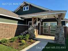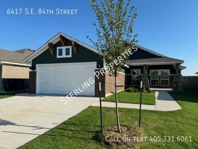 NEWLY BUILT ENERGY EFFICIENT CONSTRUCTION in the Abbot Lake community in SEOKC. Moore school district. Conveniently located off SE 89th & Sooner Rd, quick commute to Tinker Air Force Base to the north and Norman to the south. The community has an amazing splash pad, playground and fishing pond for your enjoyment. The home features wood look tile throughout the main living areas with carpet in the 3 bedrooms. Master suite to the back of the home with double vanity, garden tub and tile shower. The secondary bedrooms are to the side of the home with a mud bench in the utility room off the garage entry. Kitchen features stainless steel gas range with built in microwave, pantry and a window over the kitchen sink to the backyard. Covered back patio with fully fenced backyard, pet friendly with additional refundable pet deposit.