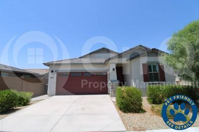 1695 sq. ft. You'll love this beautifully upgraded home in Rancho Mercado that offers 3 bedrooms + open den and 2 baths with an open great room layout. The kitchen has upgraded cabinetry with Quartz countertops, subway tile backsplash, stainless appliances, pantry and island with breakfast bar. Sliding doors lead out to the covered patio and private backyard with additional paver patios, easy-care artificial turf, & mountain views. The primary bedroom has an en-suite bath with dual sink vanity, oversized shower and roomy walk-in closet. Other features include plantation shutters, neutral grey two-tone paint, upgraded tile and carpet, upgraded baseboards, crown molding and ceiling fans. 2 car garage. Application: $65 Application Fee Per Applicant 18 years or older (Nonrefundable). Please allow 24 to 72 business hours to process the Application once all required documents are submitted by all applicants 18 years or older. Lease Length: 12-month Minimum (Longer Lease Term may be negotiable) Initial MOVE-IN Costs: Upon application approval, a nonrefundable Holding Retainer will be required to secure the property and will be applied towards the move-in costs. The Holding Retainer amount is determined by the type of Security Deposit option you choose. Applicants can choose between a traditional Security Deposit which may be 1.25 times the monthly rent but not greater than 1.5 times the monthly rent (75% refundable) or a Security Deposit Alternative program (only available on long-term leases of 12 months or more). A $250 one-time lease preparation fee as well as the first month's rent is due prior to move-in. Pet Policy: Dogs and Cats Allowed with the following exceptions: Pets will be considered upon approval. If the Applicant has a Pet, $150 Non-Refundable Pet Fee per pet. Recurring Monthly Costs: There is a 3.3% Administration Fee. All on Q Property Management Residents are enrolled in the Resident Benefits Package for $39 or $49 with pets, which includes liability insurance, credit building to help boost the resident's credit score with timely rent payments, move-in concierge service making utility connection and home service setup a breeze during your move-in, Renter to Buyer program and much more. All information including advertised rent and other charges are deemed reliable but not guaranteed and is subject to change. Pet Friendly, Concierge, Fenced Yard, Dishwasher, Washer, Dryer, Microwave, Refrigerator, Ceiling Fan, Patio, Laundry Room, Pantry, Carpet, Tile & Baseboard.