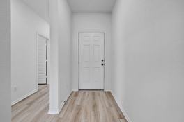 All windows have white wood blinds.