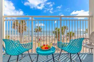 Beautiful 1 bedroom, 1 bathroom oceanfront unit located on the 2nd floor at the Sandy Beach Resort. This condo sleeps up to 6 people with two double beds in the bedroom, and a Murphy bed in the living room. The bathroom offers a shower/ jacuzzi tub combo and a large vanity with granite countertops. Centrally located in the unit is a fully equipped kitchen that features cabinets with brushed nickel hardware, granite countertops and upgraded appliances (old appliances in picture) Step into the living room and enjoy the private oceanfront balcony with breathtaking views of the Atlantic ocean. On top of this fantastic unit, the Sandy Beach Resort offers great amenities with indoor/outdoor pools, hot tubs & kiddie pools, a indoor lazy river, wireless internet, laundry facility and fitness room