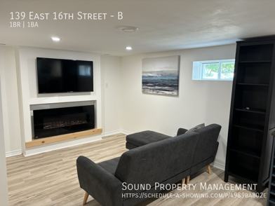 •Comfort & Convenience: Modern electric fireplace, brand new 50” smart TV, barn doors, pot lights, and a lit bathroom mirror with a brightly tiled shower.