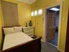 We offer a clean and safe environment in the heart of the city. This unit on the ground floor has an area of 21 by 22 feet. The bedroom is about 9 by 9 feet. You will pass through a separate entrance on the side of the property through the garage. It has its own private bathroom. The unit has a kitchenette with a sink, refrigerator, toaster oven, and microwave. The french doors open up to a lush garden, a sunny deck, and a patio. The unit is carpeted and has access to all premium cable channels. High-speed internet connection and use of the washers/dryers are provided free of charge. The unit comes with a very comfortable bed, kitchen utensils, dishes, two televisions, etc. Parking is street parking.
