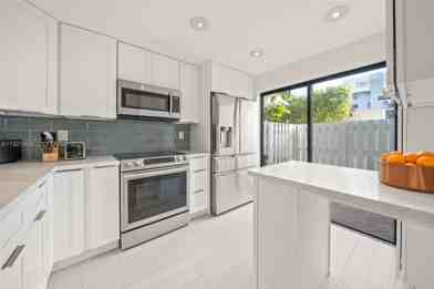 Waterfront living at its finest in Sunny Isles. This spacious 2-story residence is located in the exclusive, guard-gated Poinciana Island--an intimate 13-acre community with lush landscaping, marina views, and direct Intracoastal access. The home offers 2,370 SF of interior space plus an expansive 500+ SF private deck at water level, ideal for entertaining or enjoying peaceful views of Atlantic Isle.Inside, the open layout features soaring exposed-beam ceilings, custom millwork, porcelain floors, and great natural light. The modern kitchen includes sleek cabinetry and stainless-steel appliances. Bedrooms are generous with renovated bathrooms, walk-in closets, updated closet doors, and excellent storage.