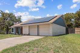 This charming 3 bedroom 2 bath home has a beautiful living room w/ a large brick fireplace that is surrounded by built-in shelving. Vaulted ceiling between the open living & dining area. Tons of natural light & neutral colored walls. Updated kitchen w/ stainless steal appliances, gas stove, & a breakfast nook. Spacious master w/dual sinks & a walk-in closet. Large backyard & fence for dogs. Save on electricity with the solar panels on the home - some months with no electricity bill.