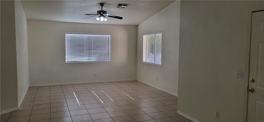 4-Bedroom, 2-Bath, 2-Car Garage in central Fort Mohave location. Tile flooring in living room, casual dining area, kitchen and laundry areas. Carpeted bedrooms. Large kitchen pantry, gas stove, microwave and dishwasher. Tile counters with breakfast bar. Ceiling fans in every room. Master bedroom features a walk-in closet and sliding glass doors to the covered patio. Master bath has a walk-in shower. Large fenced back yard. Welcome Home to Desert Horizons.