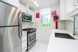 630 sq. ft. fully renovated and fully furnished. Marble tile floors and engineered hardwood throughout. Quartz countertops in kitchen and bath. Formal entry flows beautifully into a spacious living and dining area. Gas fireplace and range included in strata fees - LOW hydro costs. High speed Internet with WIFI. The suite is bright and airy and situated on the building’s quiet side. Move in ready. Kitchen comes fully equipped for all your culinary adventures.