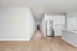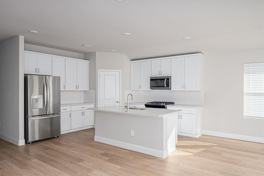 This spacious living area flows effortlessly into a covered back patio, ideal for outdoor relaxation. The modern kitchen is equipped with white cabinetry, sleek quartz countertops, and stainless steel appliances, making everyday cooking a breeze. The master and additional bedrooms are comfortably carpeted, while the living area features low-maintenance luxury vinyl plank flooring. The home comes with a refrigerator, washer, and dryer. The large backyard offers plenty of room for play and relaxation. Enjoy the peacefulness of suburban living, with easy access to city amenities. The neighborhood amenity center includes a pool and playground.