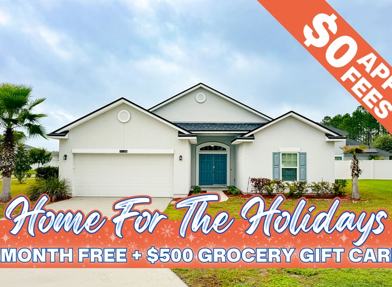 Home for the Holidays Move-In Savings Feast on us! Enjoy a $500 grocery gift card — your holiday meal is covered. Rent-free December! Relax and let us cover one month of rent. Skip the fees! Apply with $0 application fees — more cheer, less cost. Save even more! Ask about our $150 Security Deposit Alternative (subject to approval). Don’t miss out — this limited-time offer ends November 15, 2025!