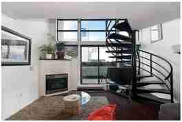 Chic 2-level loft in the XL building, centrally located in the Cambie corridor - Features 2 bathrooms, a spacious loft bedroom with a full bath and walk-in closet, and in-suite laundry. Enjoy 16-foot ceilings, floor-to-ceiling with windows, exposed concrete walls, a gas fireplace, and a North-facing patio with city and mountain views. The sleek kitchen boasts stainless steel appliances and concrete countertops. Steps from restaurants, Whole Foods, and the Canada Line.