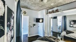 Some unique design features include: polished concrete floors and exposed 9 foot concrete ceilings, which lend to a New York style loft feel.