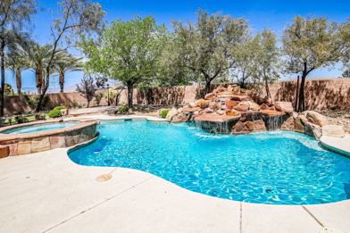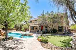 An Amazing Find!! Located In The Private Enclave Of Lone Mountain Classics, This 5 Bedroom 4000+ Sq/Ft 3 Car Garage & Side Yard Full Size Rv Parking. Huge Bonus Room Upstairs W/ Newer Carpet With Memory Foam Padding Throughout Upstairs. Newly Remodeled & Upgraded Kitchen With Top Of The Line Lg Stainless Steel Appliances,Oversized Extended Granite Island And Granite Countertops With Tons Of Cabinet Space. Spacious Formal Living And Dining Rooms And Family Room With 5.1 Dolby Surround Sound And Wired For Your Media And Entertainment Pleasure. Large Primary Bedroom With Exquisitely Upgraded Designer Bath - European Tile. Primary Bedroom Also Has A Private Balcony Overseeing An Amazing Backyard Paradise Featuring Multiple Playscape Areas W/ Oversized Pool, With Waterfall, Spa & Lagoon Play Area. Large Custom Putting Green, Inground Trampoline Adjacent. Covered Patio W/ Built In 8 Burner Bbq & Bar Area. Private Side Yard Retreat Featuring Fire Pit, Fruit Trees & Much More- Must See