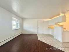 The unit features an open-concept layout with a well-sized kitchen area. The bathroom, featuring a convenient tub/shower combo and generously sized vanity, offers plenty of storage, further supplemented by a linen closet. Enjoy the added convenience of an on-site coin laundry, a dedicated parking spot for each apartment, and a pet-friendly environment complete with plenty of grassy areas. The newly installed windows, roofs, and heating system are sure to add to the comfort and energy efficiency of your new home.