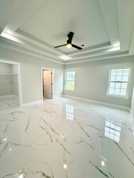 Master suite with en-suite bath - custom walk-in shower with bench, walk-in closet, & beautiful tray ceiling detail.
