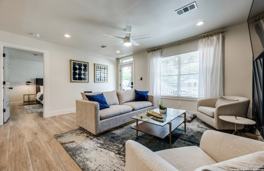 Stunning fully furnished designer home showcasing exceptional attention to detail throughout this reimagined 3-bed, 2-bath property. The interior features striking backsplashes in both the primary bath and kitchen, complemented by modern shaker-style cabinetry and sleek quartz countertops. The chef's kitchen boasts gas cooking and new stainless steel appliances, including refrigerators. This turnkey property has been extensively updated with new luxury vinyl flooring, fresh foundation, new HVAC system, modern ceiling fans, lighting fixtures, and custom window treatments. Washer & dryer connections included. The spacious lot is fully enclosed with a 6-foot privacy fence and includes an irrigation system for easy maintenance. The backyard is a perfect retreat featuring a grassy area ideal for pets and an artfully designed built-in wood firepit with ambient lighting. Yard Maintenance is included! Located in the desirable Lone Star neighborhood of Southtown, this home puts you just blocks away from local favorites including Blue Star, Dos Sirenos Brewing, Leche de Tigre, and the scenic San Antonio River.
