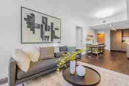 Experience luxury living in San Francisco's vibrant Mission Bay neighborhood at One Mission Bay. This spacious two-bedroom, two-bathroom apartment has an open floorplan, allowing you to tailor the space to your personal style. With elegant hardwood flooring, home office space, and central A/C, this home offers comfort and sophistication. The modern kitchen is equipped with quartz countertops, high end appliances including a five burner stovetop, oven, dishwasher, everything ideal for culinary enthusiasts. Additional features include walk-in closets, an in-unit Bosch washer and dryer, and included parking for your convenience.