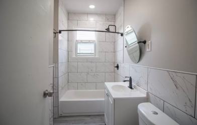 Experience luxury with a renovated bathroom.